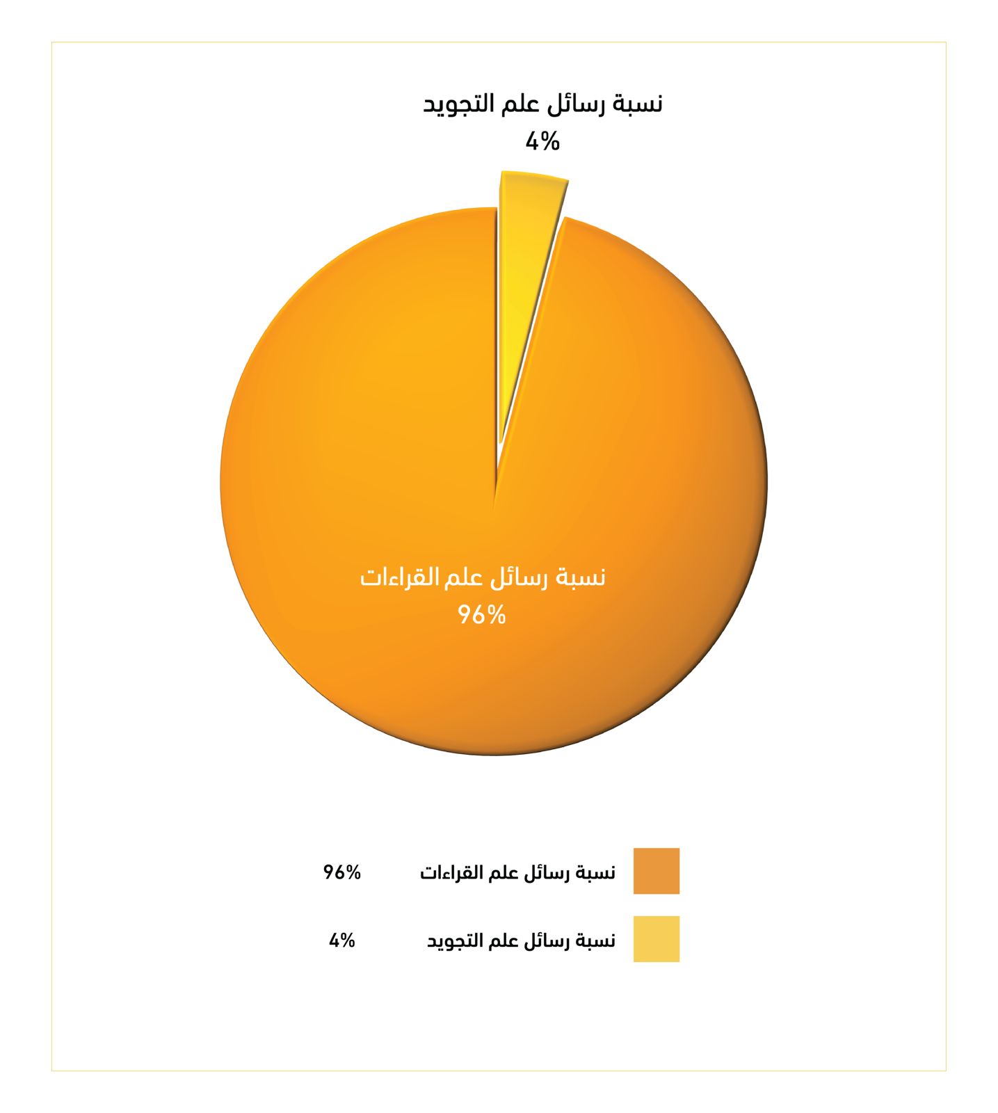 توضح هذه الصورة نسبة رسائــل علم التجويد إلى إجمالي الرسائل العلمية في علم القراءات باعتبار أنّ أكثر الرسائل العلمية قد تركّــزت فيه